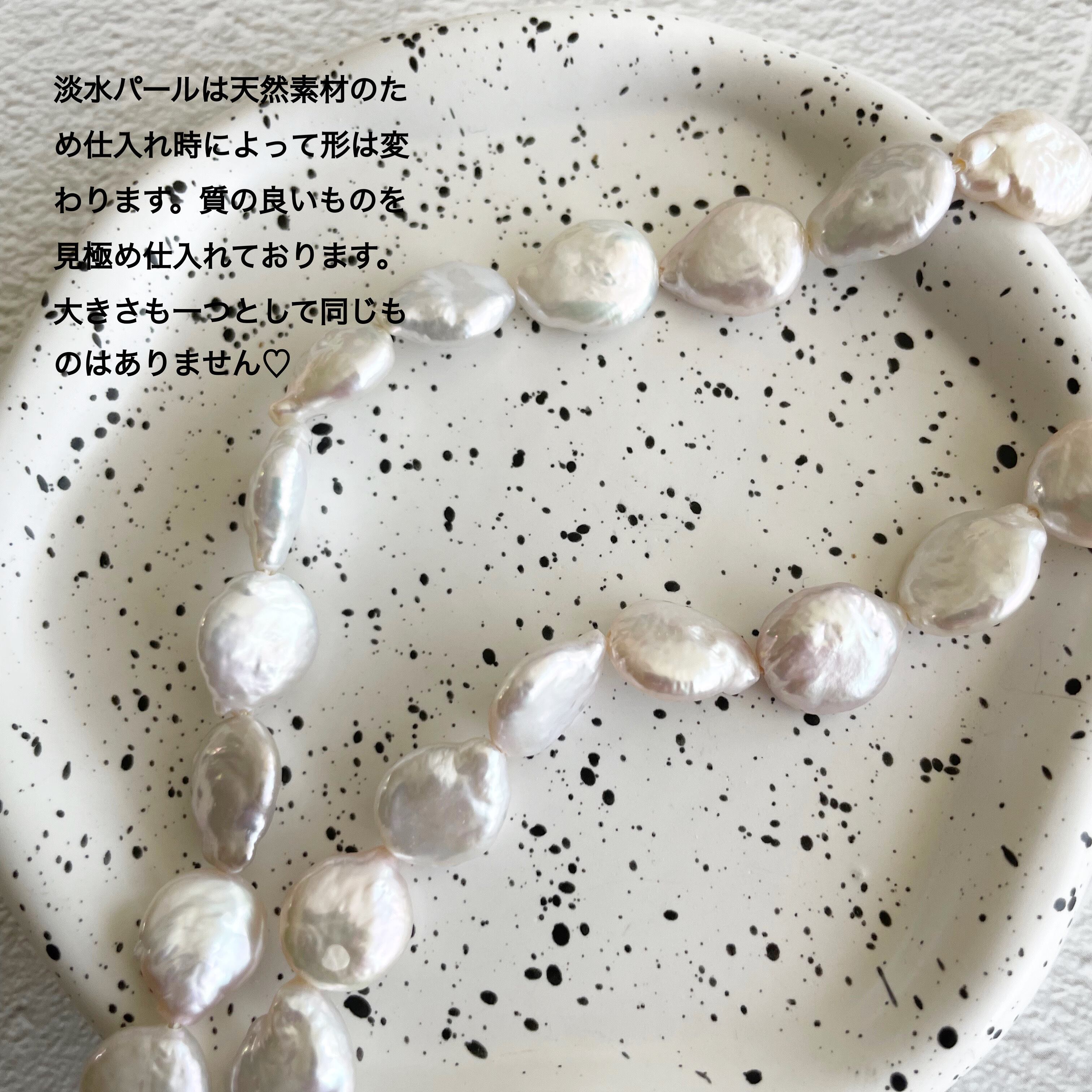 淡水パールは一つずつ大きさが違うため長さは前後します。