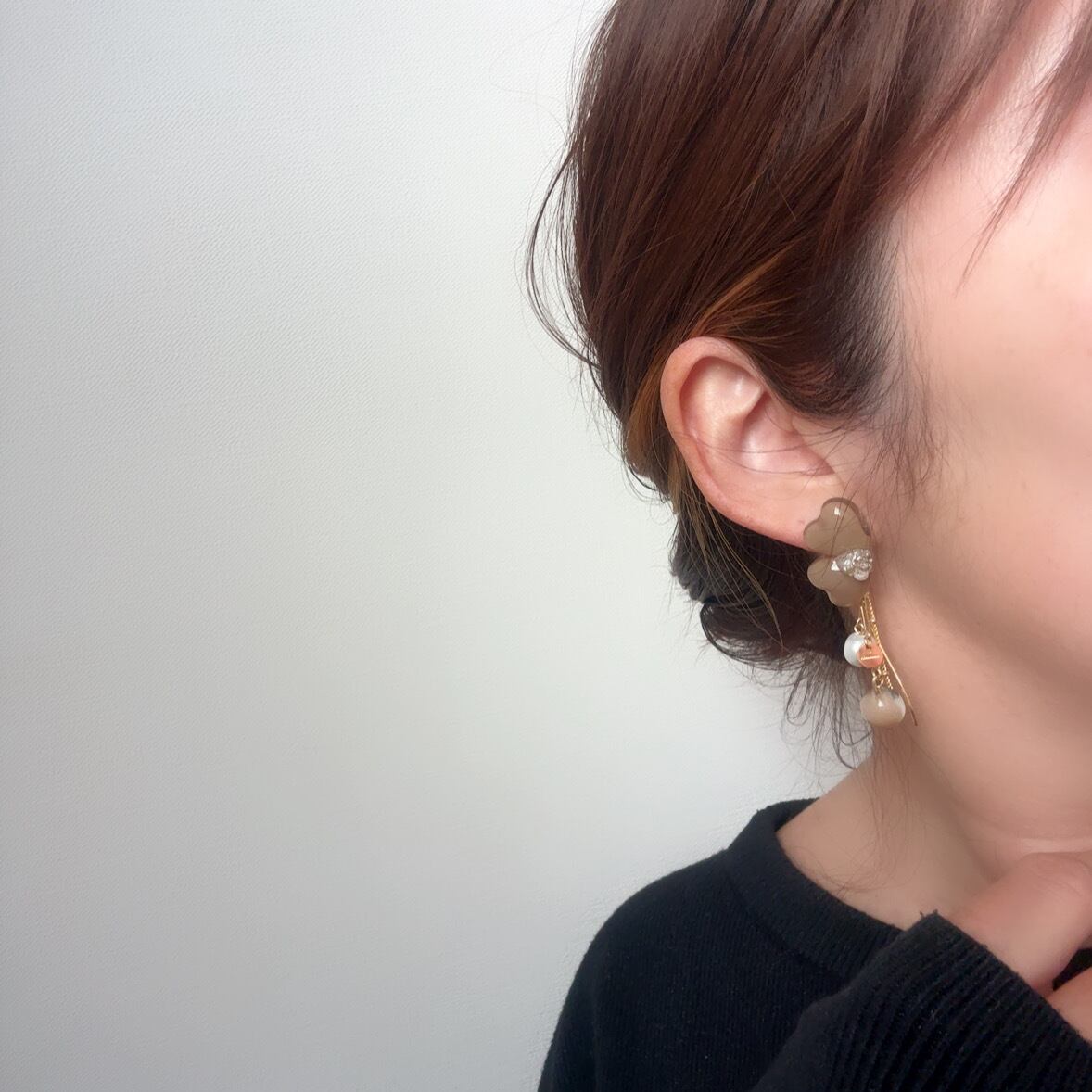 ゆらゆら揺れるチャーには良質な淡水パール、同じ色のレジンチャームもぶら下げて。。