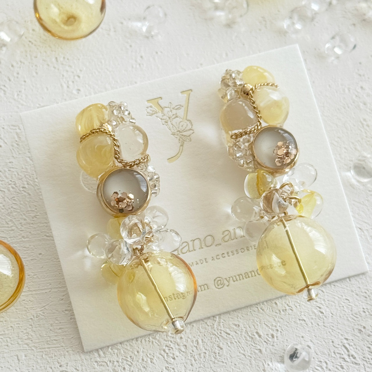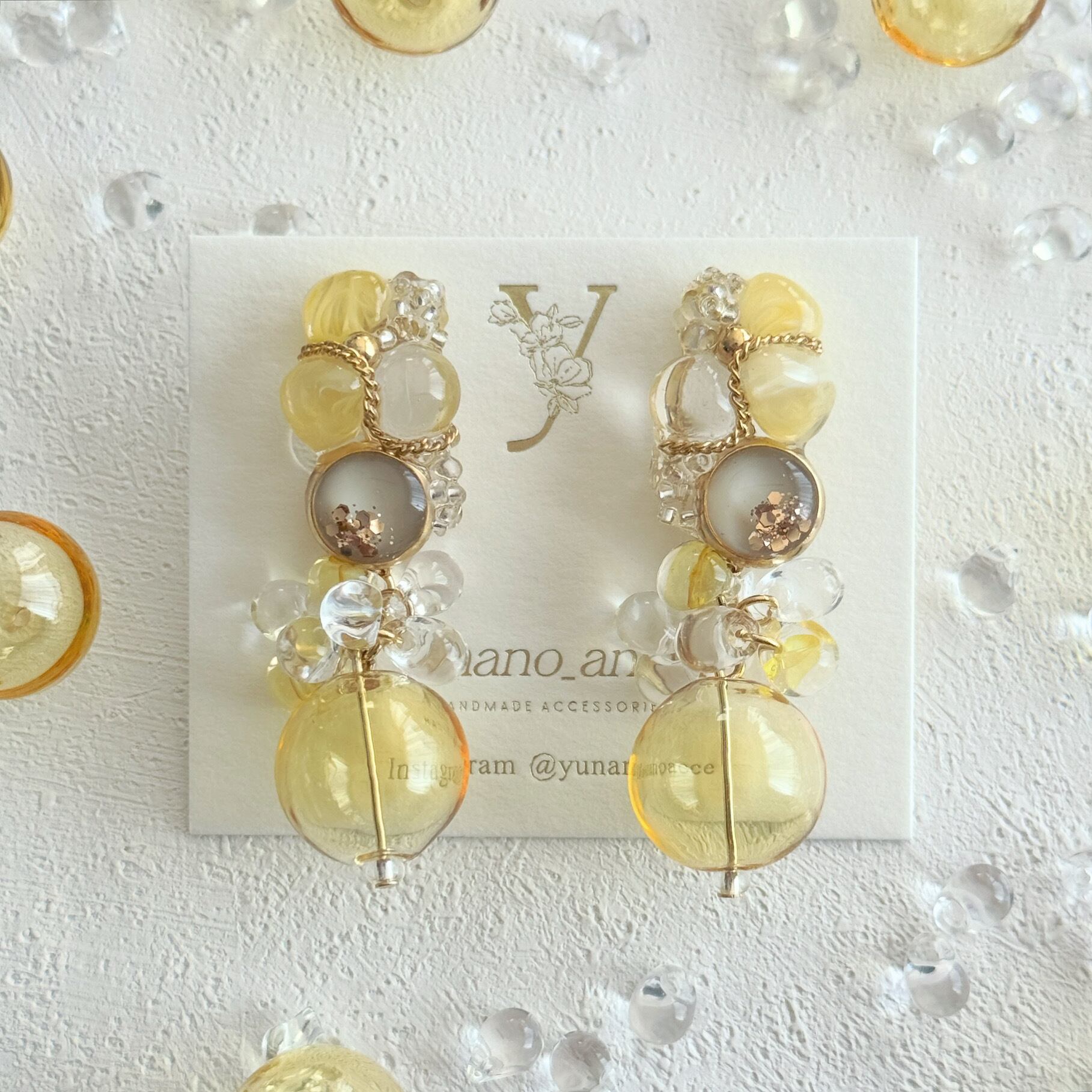 チャームにはUSAガラスビーズ、yellowのガラスドームを合わせ、さりげにゆらゆらデザイン!
