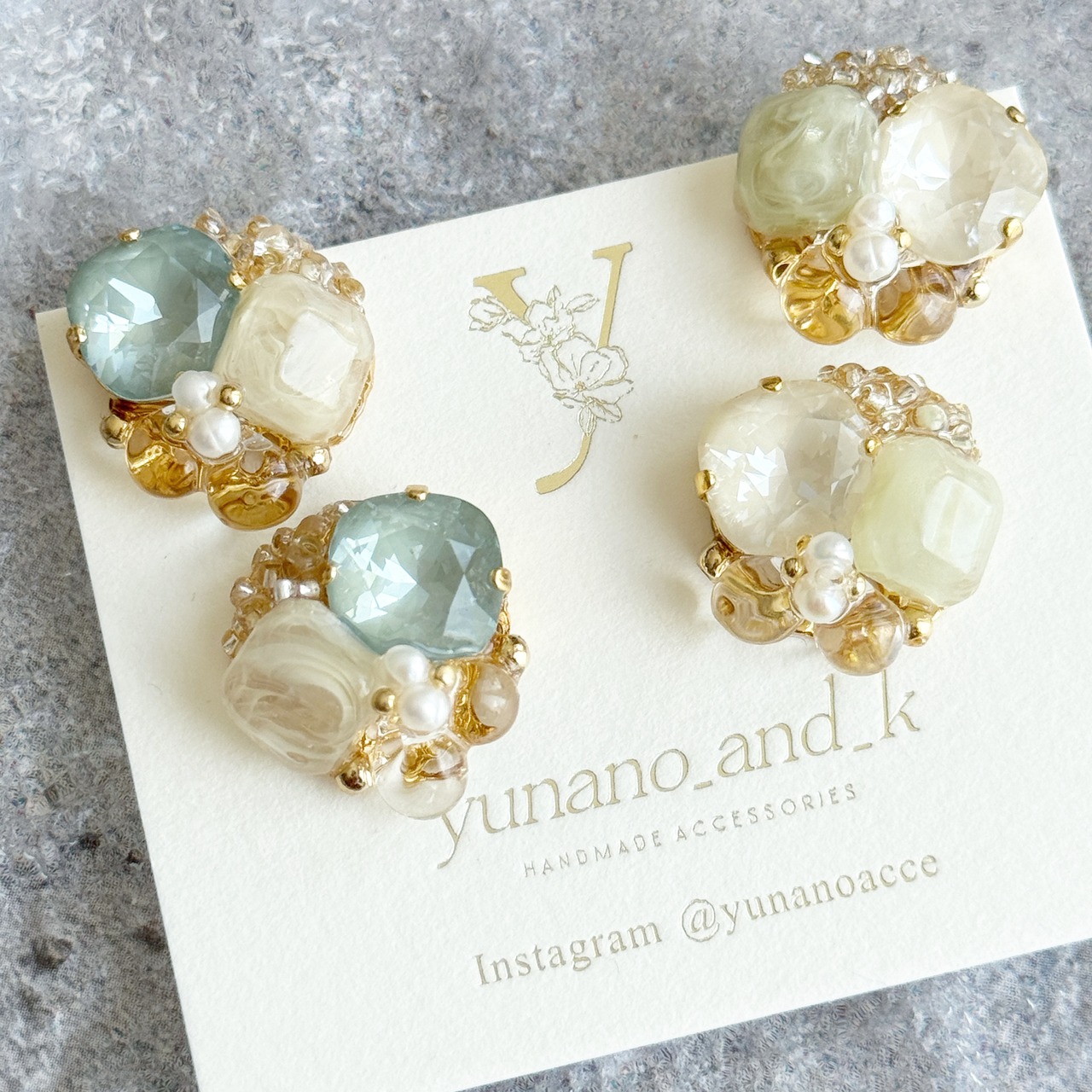【新色追加】square stone & resin &clear accessory 耳ピタversion